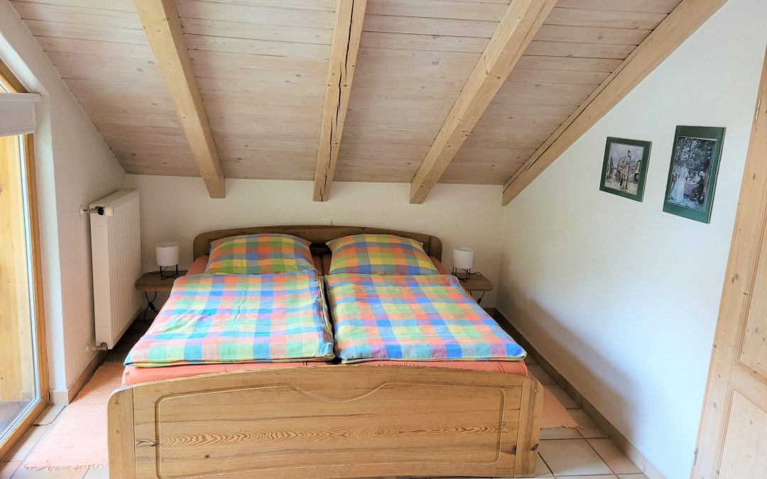 Ferienwohnungen Schimpf St. Martin, südliche Weinstraße/Pfalz, Massiv-Holz Doppelbett mit Federkernmatratzen, incl. Bettwäsche, sehr bequem
