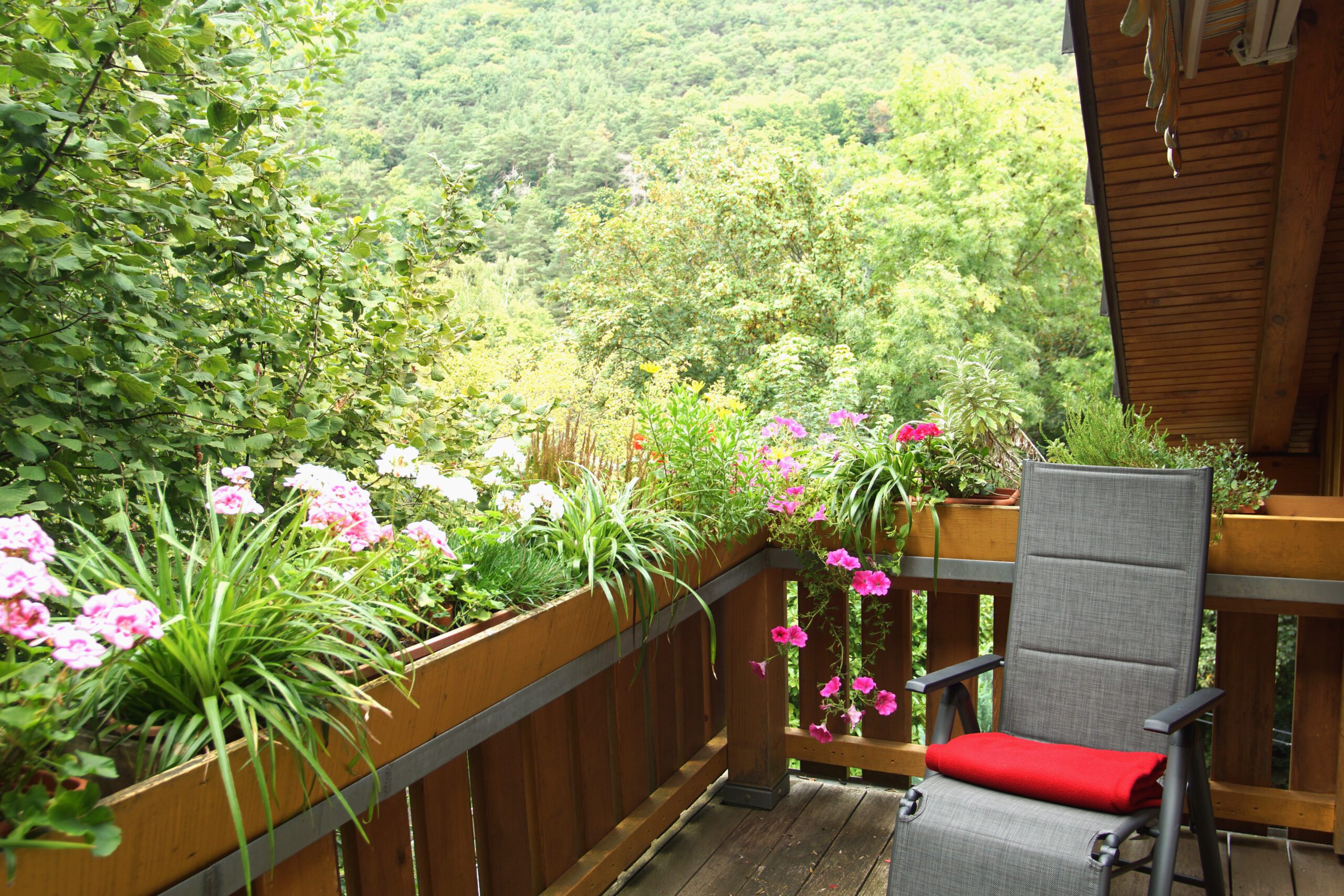 Ferienwohnungen Schimpf Sankt Martin, südliche Weinstraße/Pfalz großer Balkon am Waldrand