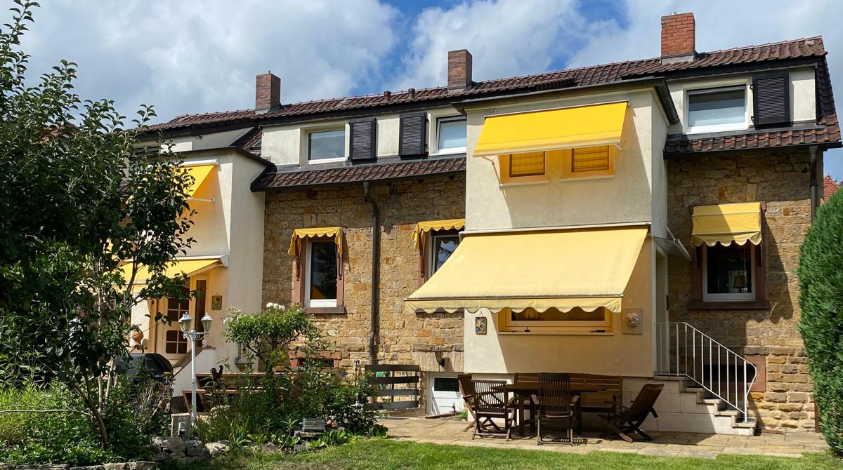 Also geeignet von 4 bis 10 Personen. Einmal 185 m² und 65 m²“. Jeweils Küche und Bad mit großem Garten.